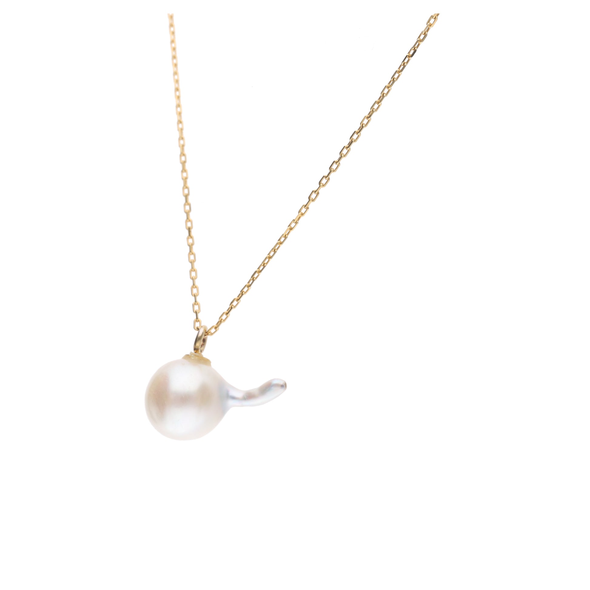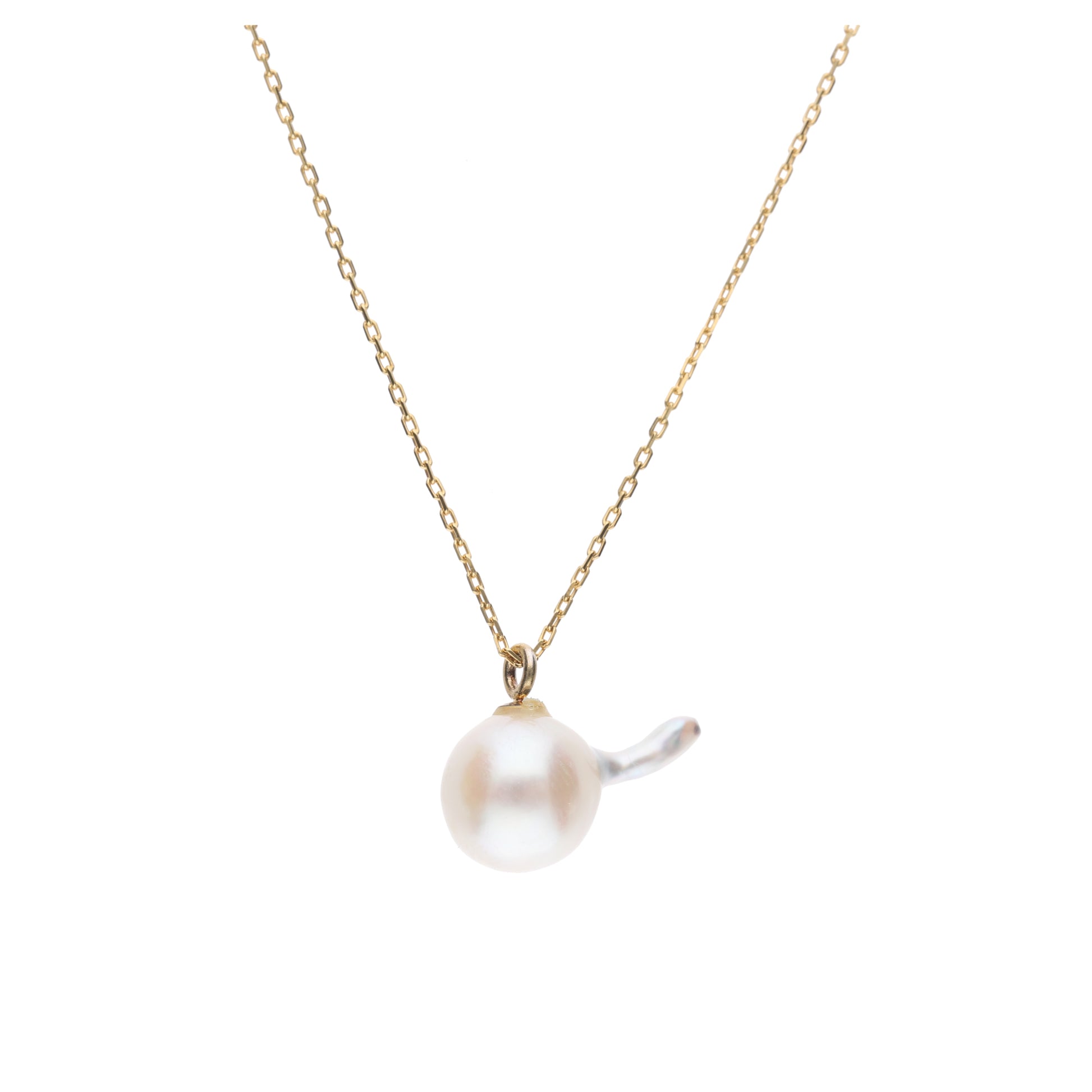 真珠の上部に金具を取り付けた「ペンダント」タイプ。デコルテの上で可愛らしい「おたまじゃくし」のモチーフが引き立ちます。