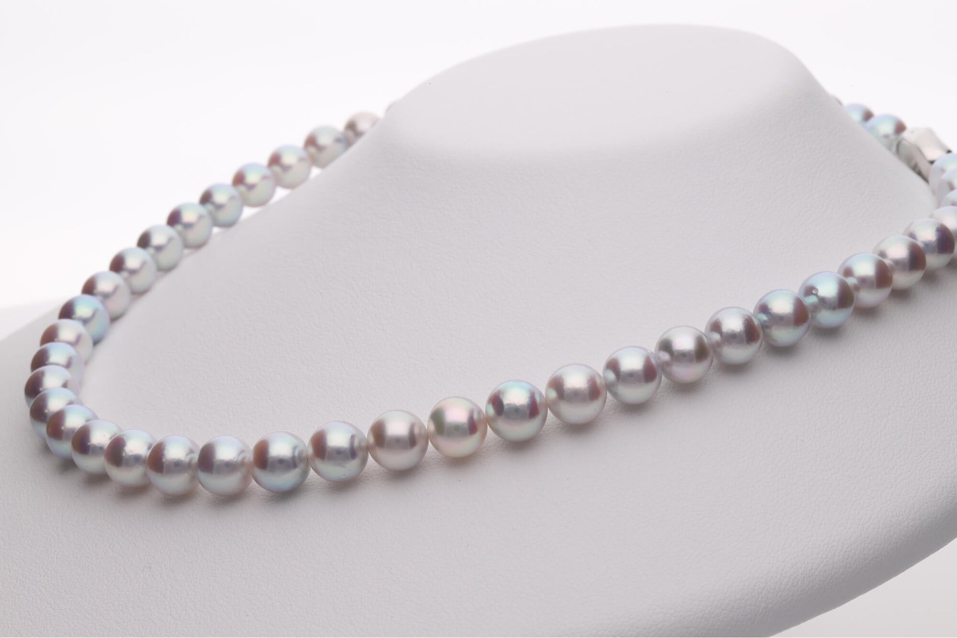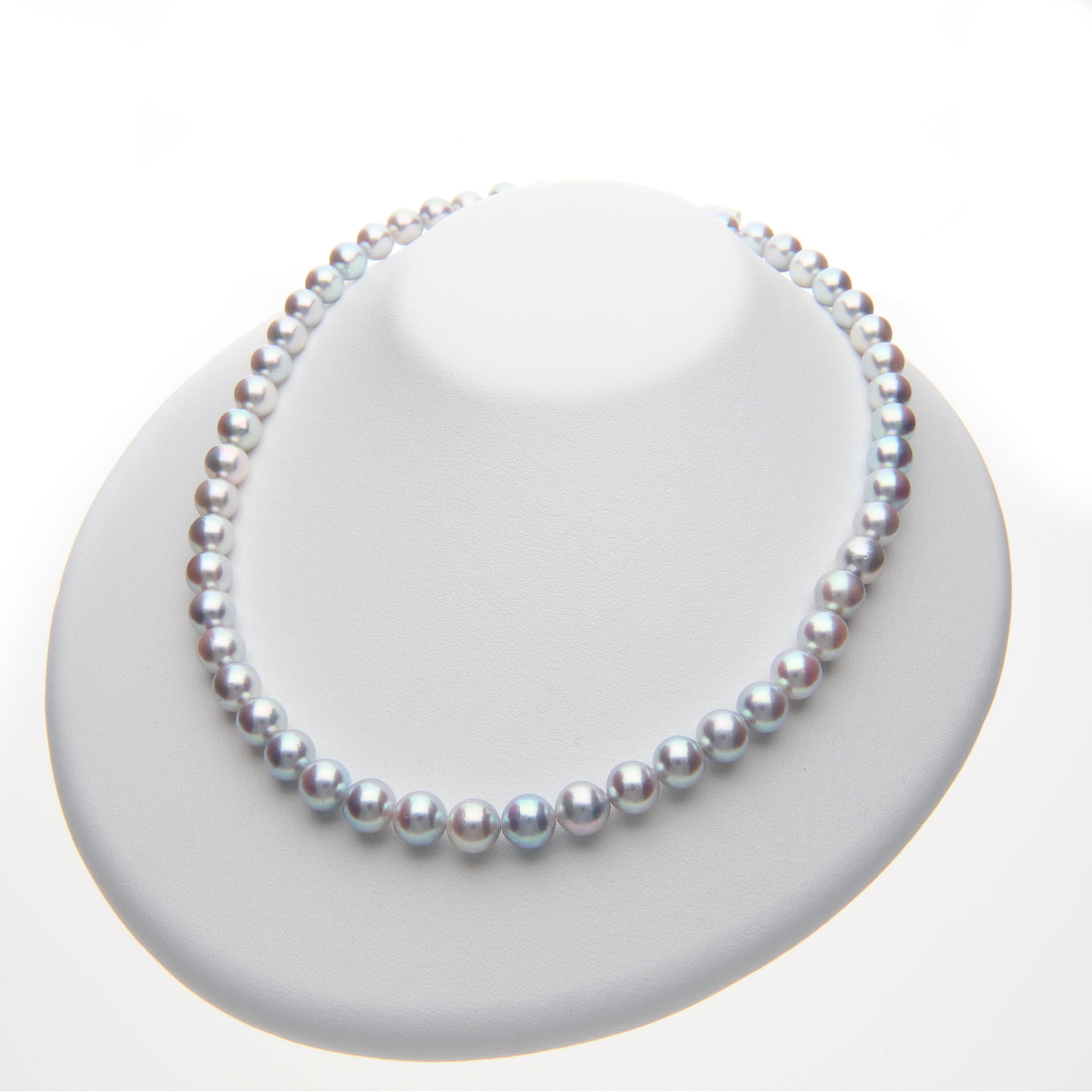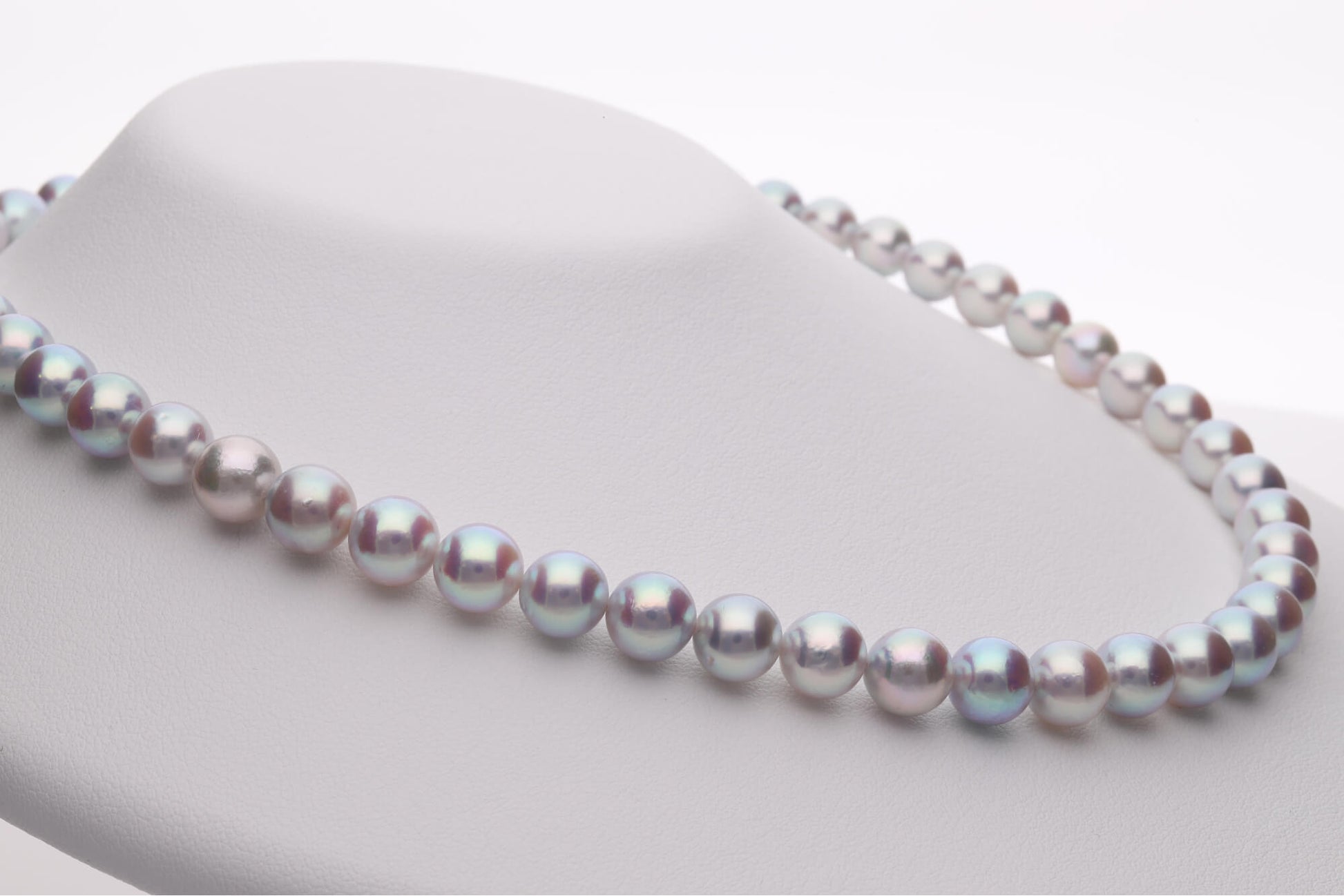 グレーパール ネックレス 8.0-8.5mm|無調色 アコヤ真珠|ナチュラルブルー系 BA109772