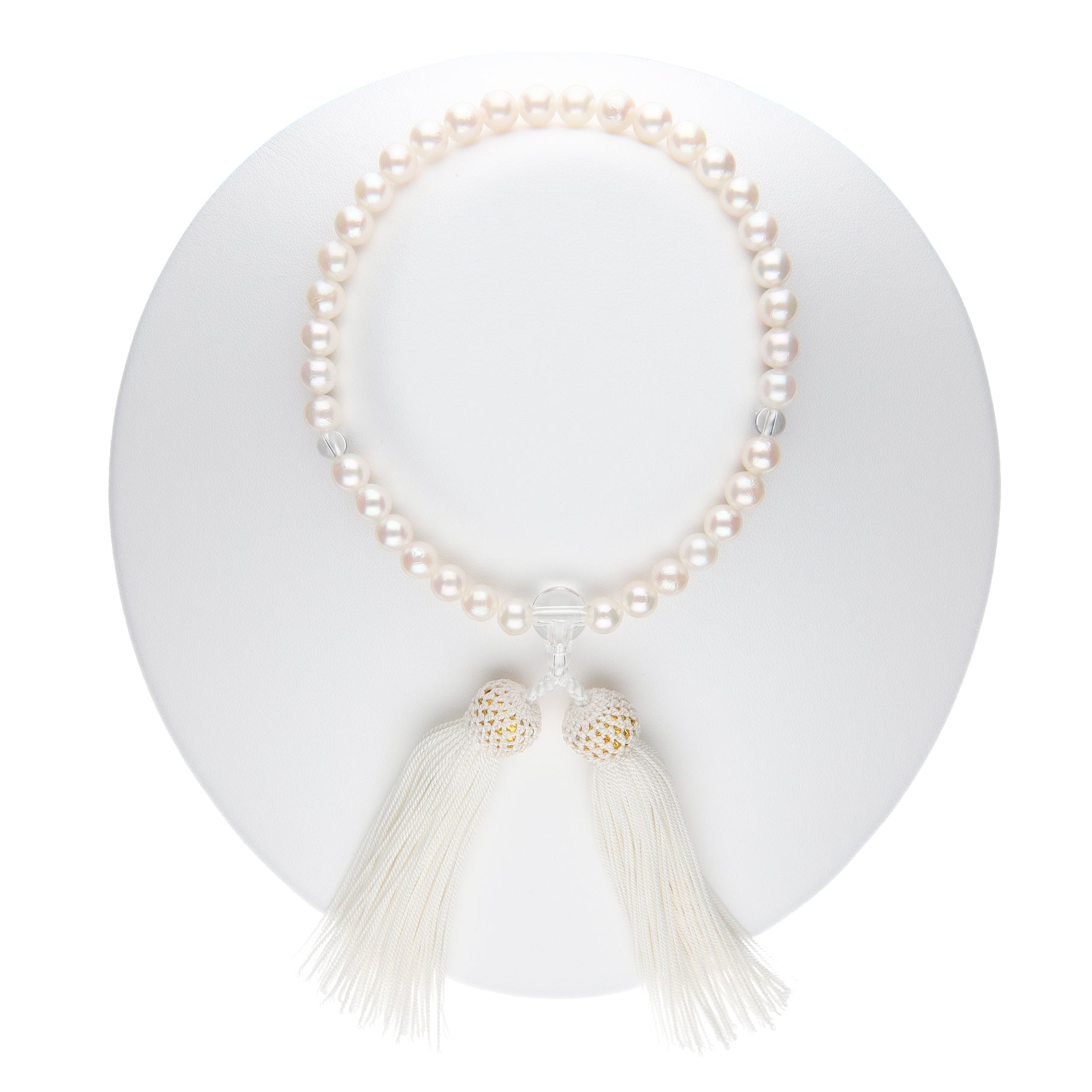 真珠数珠リフォーム|PS加工・本水晶・正絹房セット(略式念珠/男女兼用)