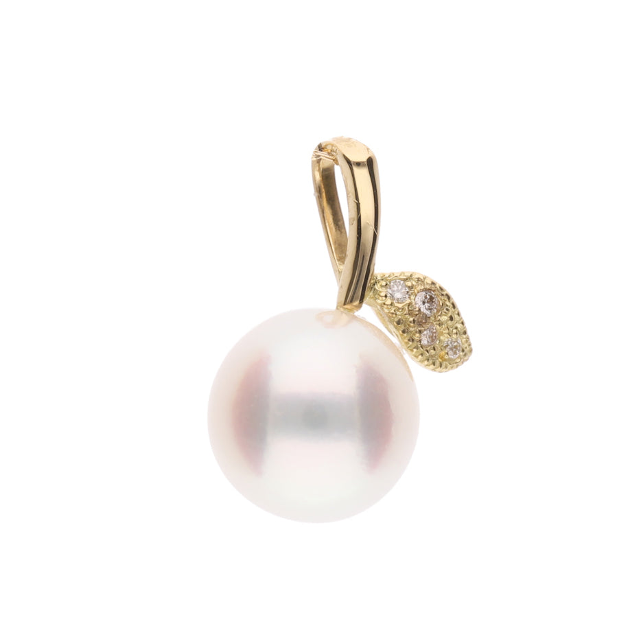 【姫果】無調色 アコヤパール(8mm・ラウンド系)天然ダイヤモンド K18 イエローゴールド ペンダントトップ