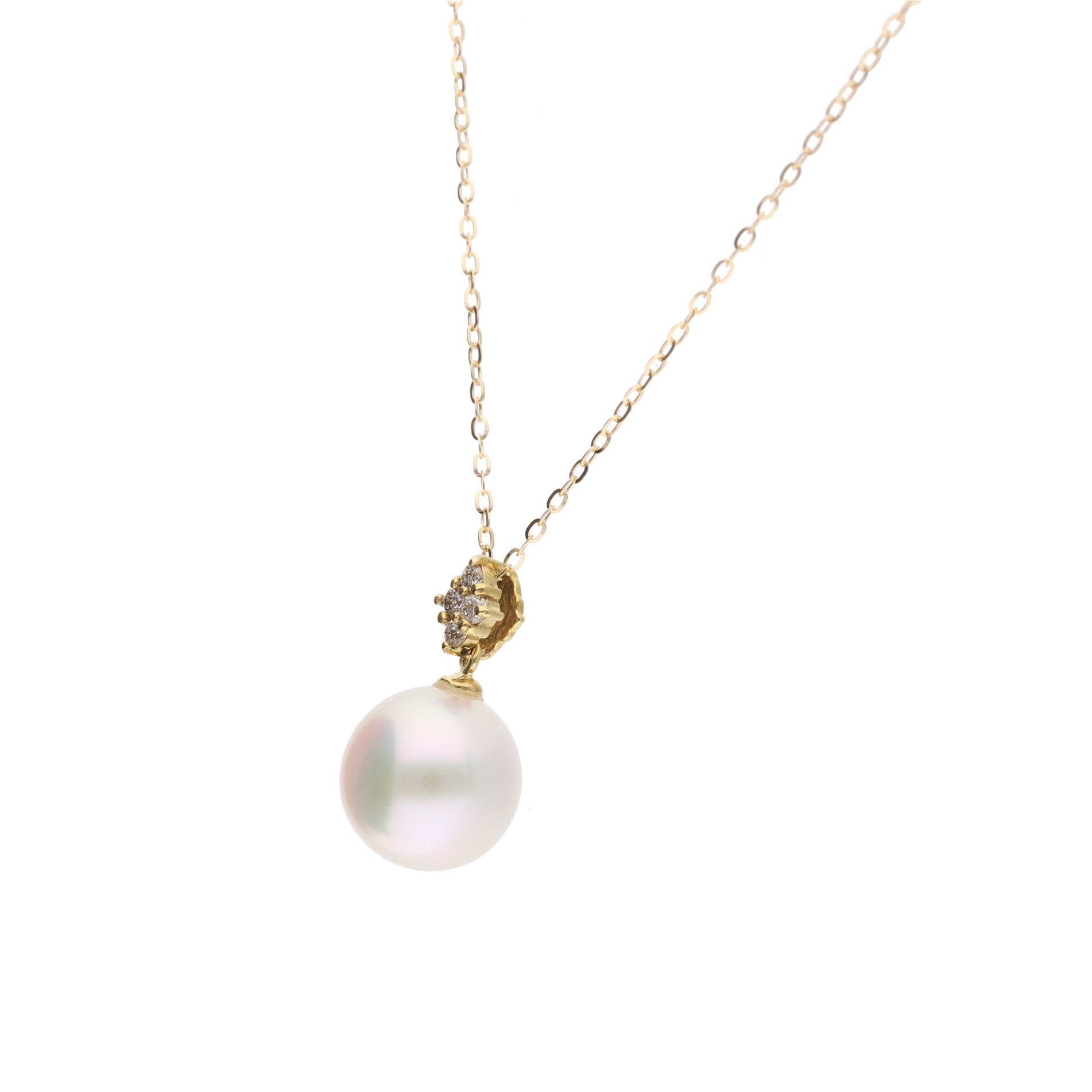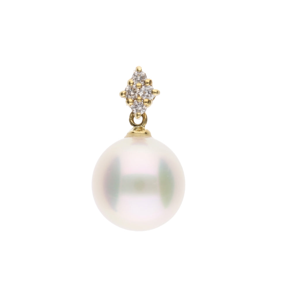 【星菱】無調色 アコヤパール(8mm・ラウンド系)天然ダイヤモンド K18 イエローゴールド ペンダントトップ