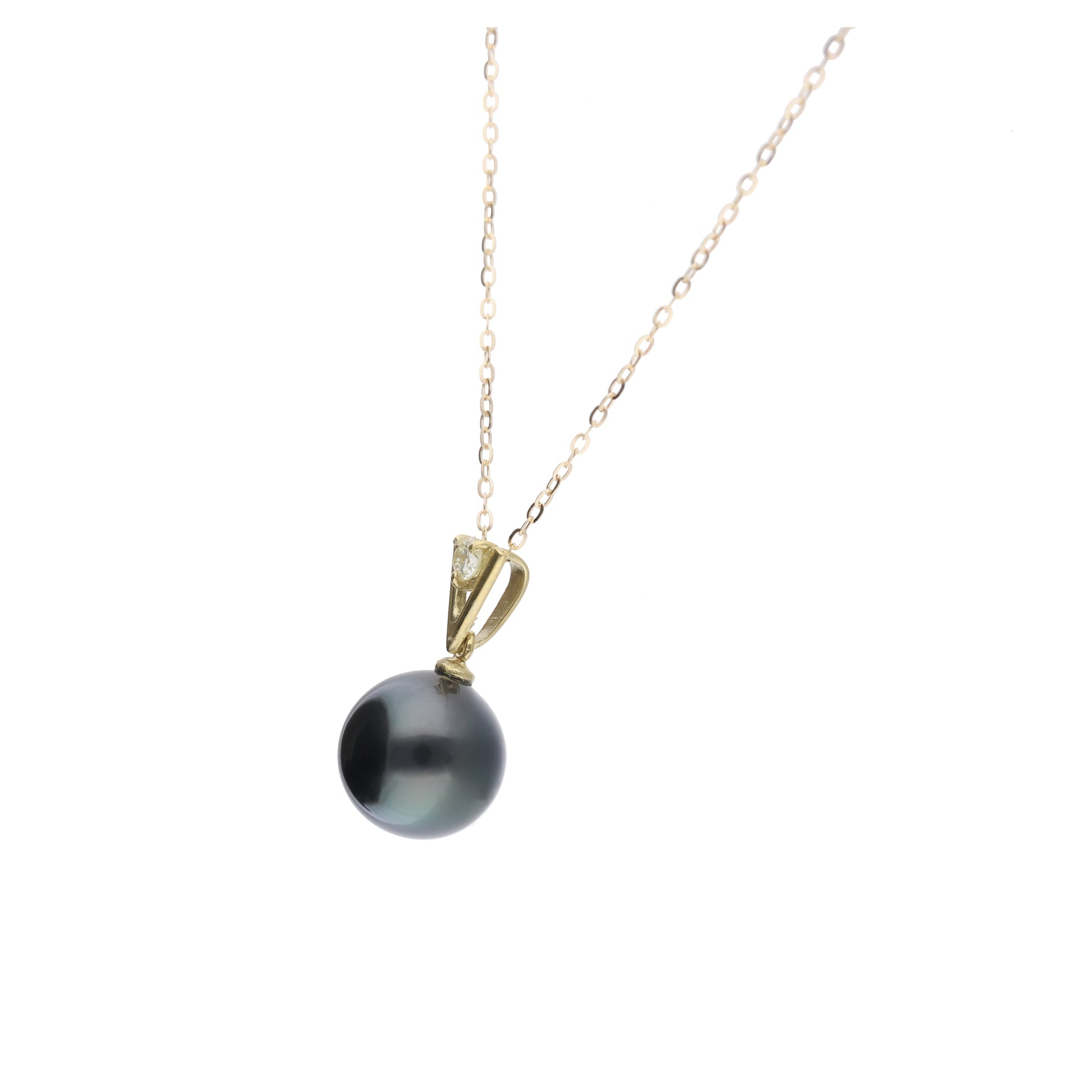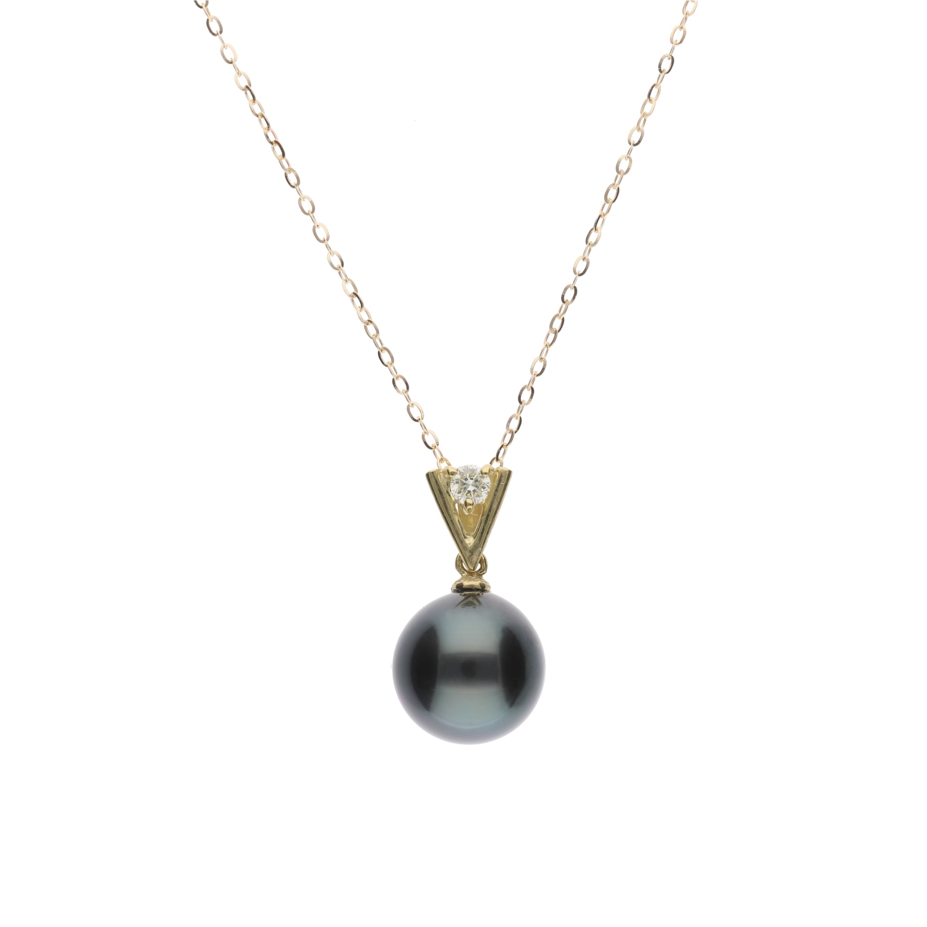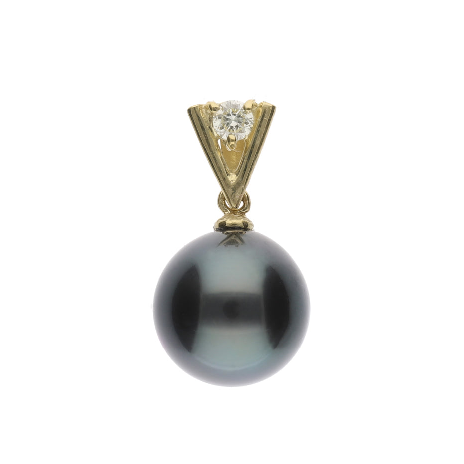 【星影】ブラックパール(黒蝶真珠・8mm・セミラウンド系)天然ダイヤモンド K18 イエローゴールド ペンダントトップ