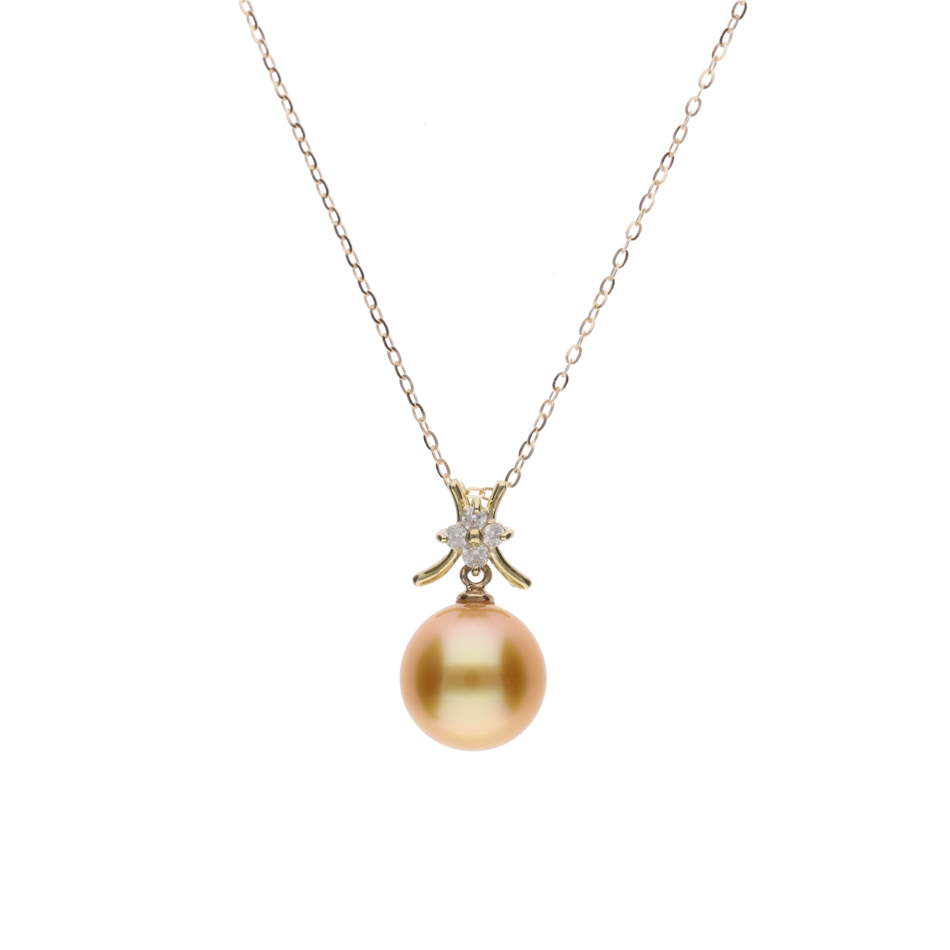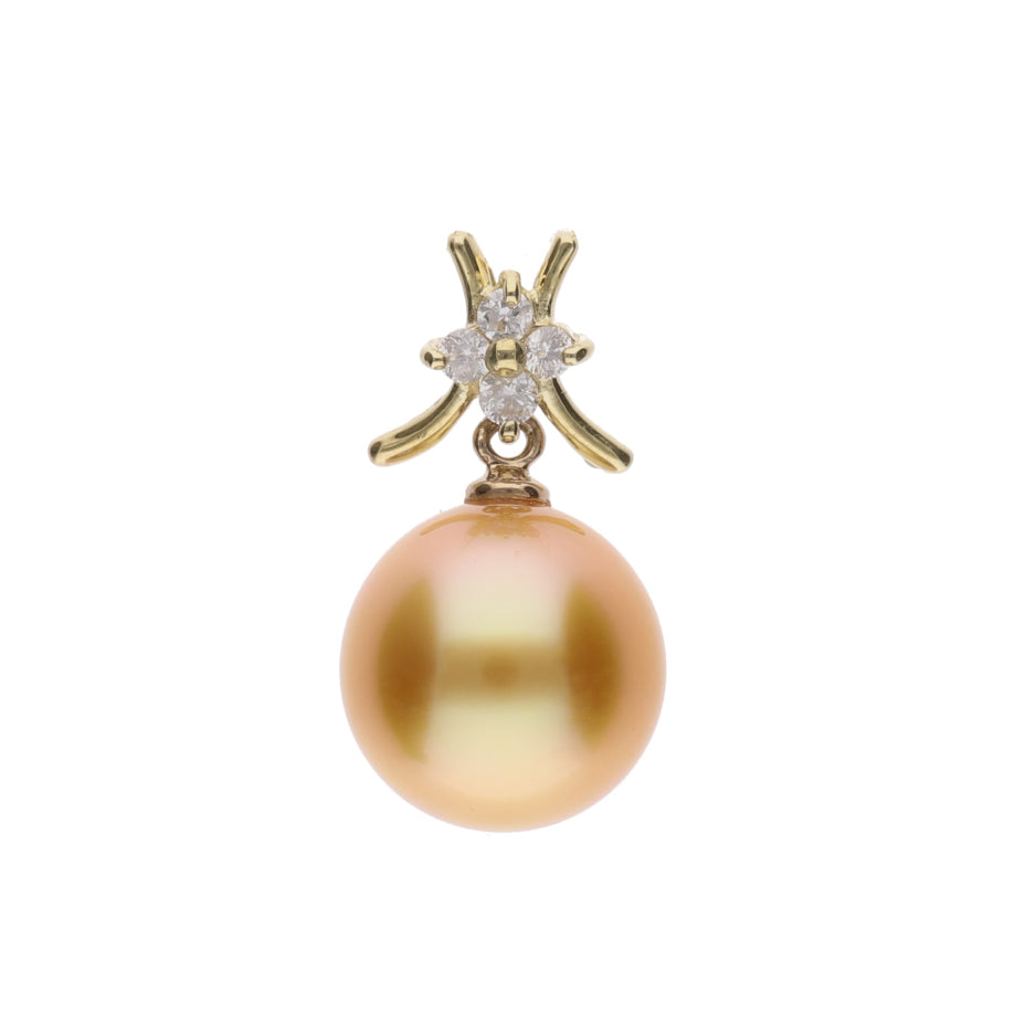 【久遠】ゴールデンパール(白蝶真珠・8.0mm・セミラウンド系)天然ダイヤモンド K18 イエローゴールド ペンダントトップ