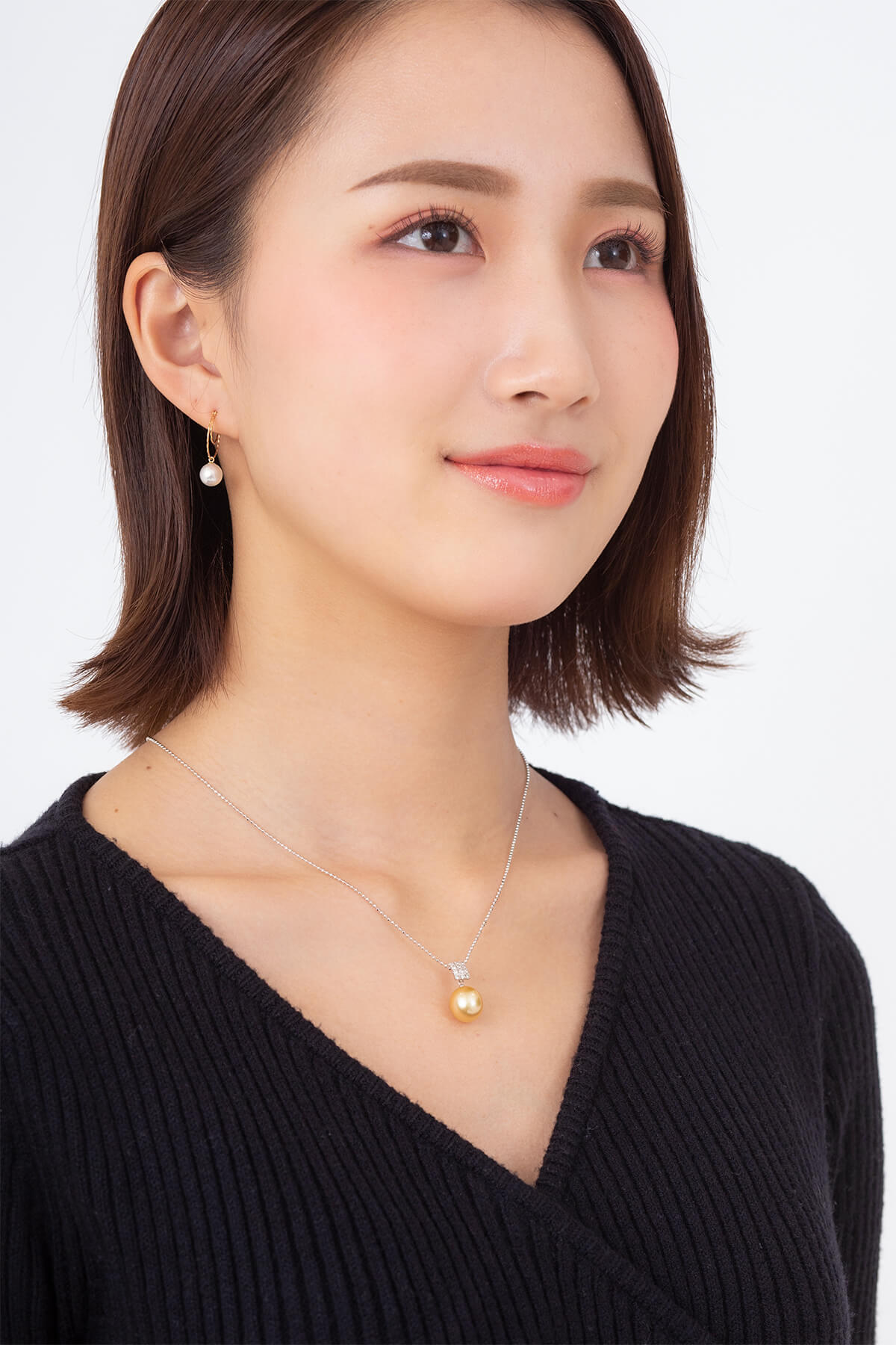 しっとりとした透明感ある輝きと奥行きある干渉色が印象的なアコヤパール。小ぶりなアコヤパールの一粒ネックレスは、休日のお出かけやオフィスなど日常使いしやすいのが魅力です。
